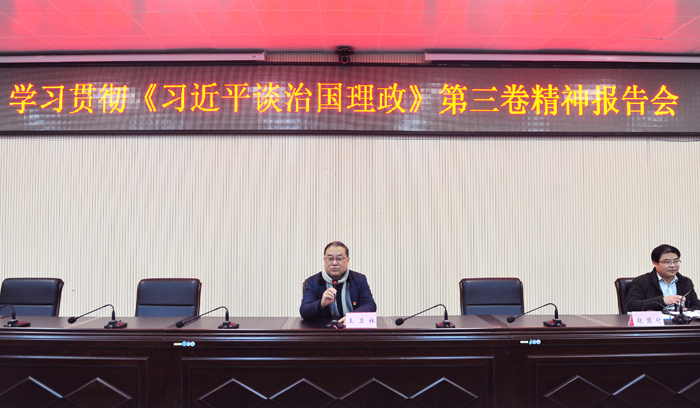 赵国付从“学习《习近平谈治国理政》第三卷的重大意义”,“把握《习近平谈治国理政》第三卷的时代背景”,“掌握《习近平谈治国理政》第三卷的主要内容”,“推动《习近平谈治国理政》第三卷学习走深走实”四个方面进行诠释,报告生动精辟、旁征博引、逻辑严密、重点突出。